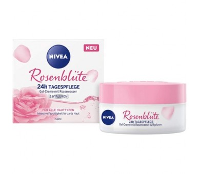• Nivea Rose Petal 24h Day Cream 50ml with Rose Water and Hyaluron - Light Gel Cream for Smooth Delicate Skin