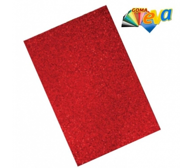 • Hoja Goma Eva 40X60 Purpurina Roja