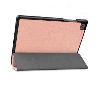 Funda Polipiel formato plegable para la tablet Samsung Galaxy A7 T500 / T505 Polipiel 10.4 Pulgadas de color rosa oro.Su formato fino y plegable, hace que pueda convertirse en un soporte para ver la tablet tanto en formato horizontal como en formato vertical.Tipo de protección: Golpes