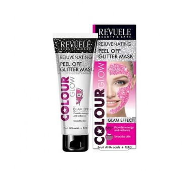 • Revuele Colour Glow Bio-Regulating Peel Off Glitter Mask Glam Effect 80ml with Fruit AHA Acids and Q10 Pink