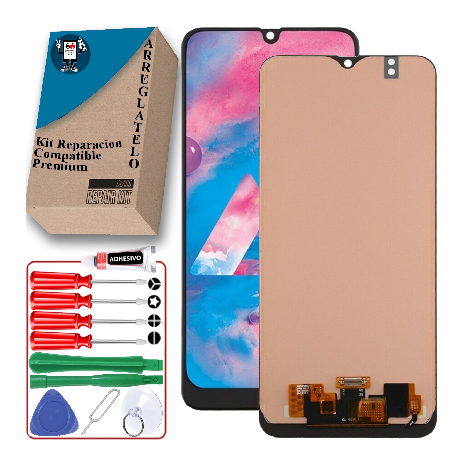 El Kit de Reparación de Pantalla para Samsung Galaxy M30, M30S 2019 M305F M307F es la solución perfecta para aquellos que desean reparar la pantalla de su dispositivo Samsung de manera fácil y rápida. Este kit incluye todas las herramientas y componentes necesarios para reemplazar la pantalla dañada por una nueva y restaurar la funcionalidad completa de tu Samsung Galaxy M30 o M30S.