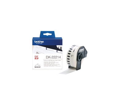 • BROTHER DK22214 - ETIQUETAS ORIGINALES DE TAMAÑO PERSONALIZADO - ANCHO 12MM X 30,48 METROS - TEXTO NEGRO SOBRE FONDO BLANCO