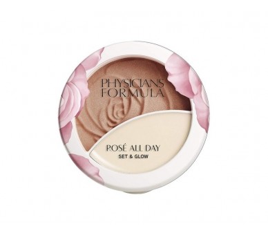 • Physicians Formula Rose All Day Set & Glow Fixing Powder and Highlighter with Moisturizing Balm for Soft Skin - Sunlit Glow with Rose Extract, Goji and Cherry Plum
