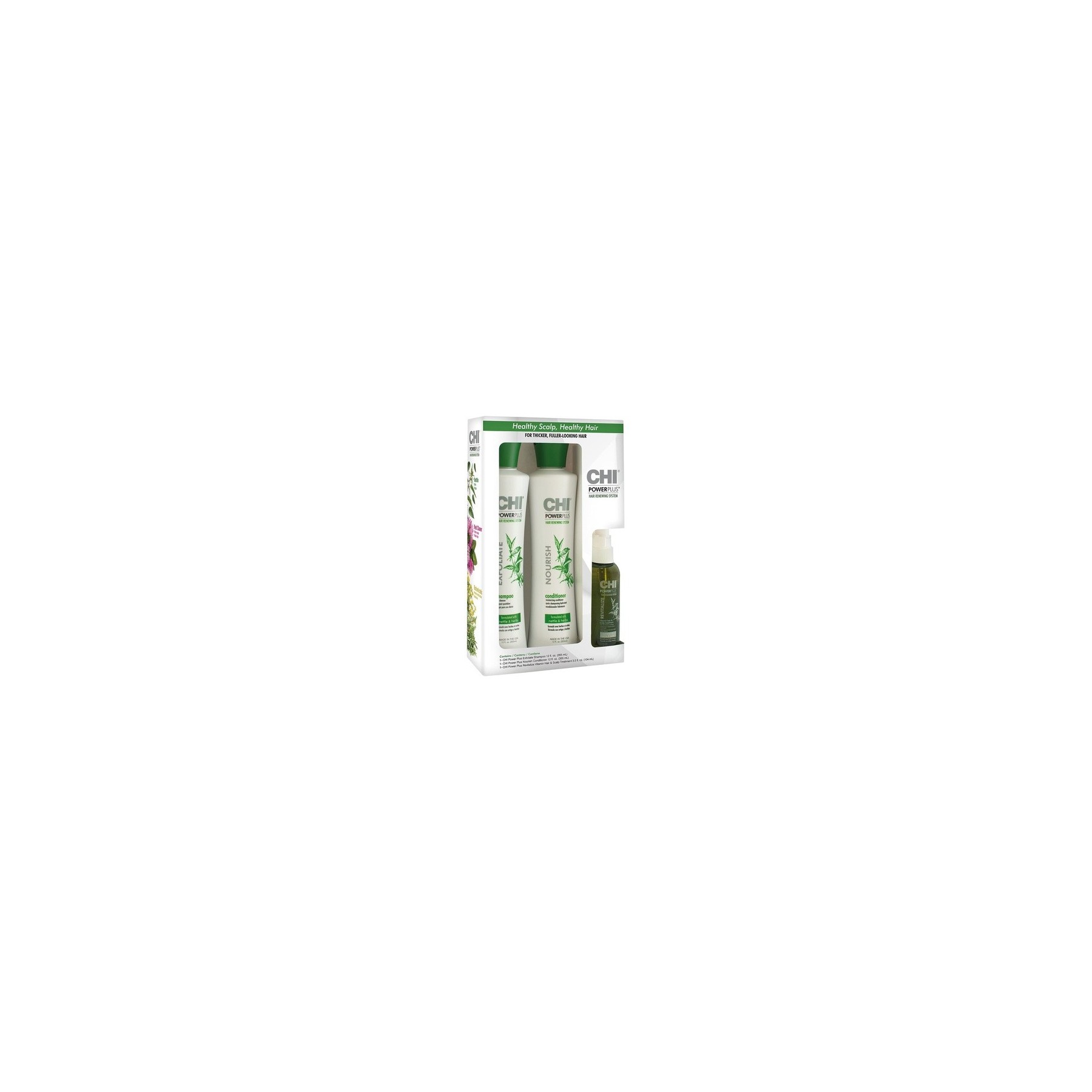 • Deep cleansing shampoo 355ml, moisturizing conditioner 355ml, leave-in care 104ml