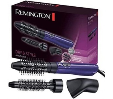 • Remington Dry & Style AS800 Hot Air Styler with Styling Nozzle Attachment 38mm and 21mm Round Brush Attachments Purple/Black