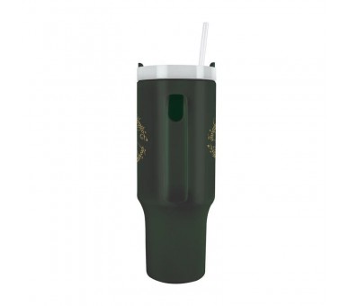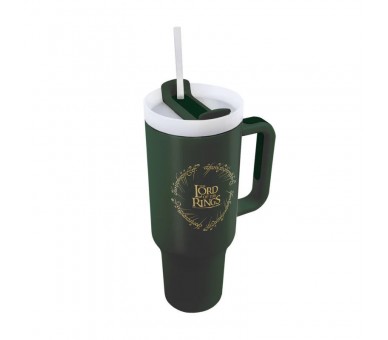 The Lord of the Rings. Capacidad: 1,2l. Con tapa, pajita y asa. Fabricada en acero inoxidable, por lo que aguanta la temperatura del líquido dentro durante más de 5 horas. No es apta para lavavajillas ni microondas.