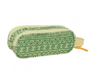 Tamaño: 21x6x8cm. Dos compartimentos separados con cremalleras. Asa de mano en la parte lateral.