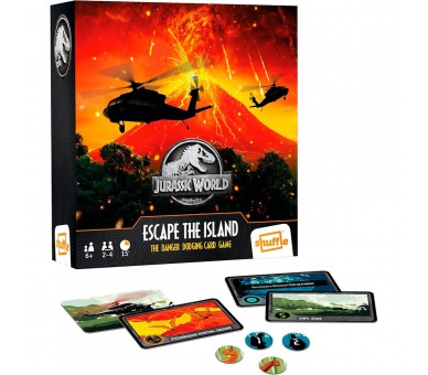 Shuffle. Ábrete camino a través del peligroso terreno de Isla Nublar y llega al helicóptero para estar a salvo con los máximos dinosaurios rescatados que puedas. Edad: +6 años. Jugadores: 2-4. Tiempo de juego aproximado: 15 minutos.