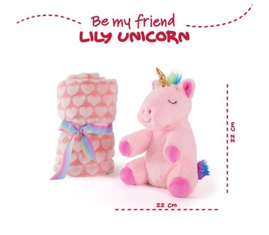 Peluche + Manta suave Unicornio Lily 22cm
